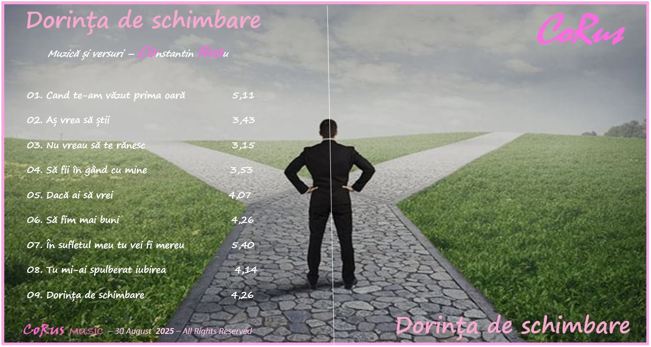 Privind viața ... pe ritmuri rock (17.01.2020)Dedic acest album tuturor celor care în noul an 2020 vor să facă printre altele și unele schimbări comportamentale benefice în viața de zi cu zi ... albumul fiind unul tematic cu piese înscrise pe partea de - Conștientizări privind viața. Astăzi fiind și sărbătoarea Sf. Antonie cel Mare dedic acest album nepoatei mele Delia Antoaneta și nu în ultimul rând și copiilor mei Monica și Vlad - fani rock și sper și fani CoRus. Download (12 piese, format mp3)